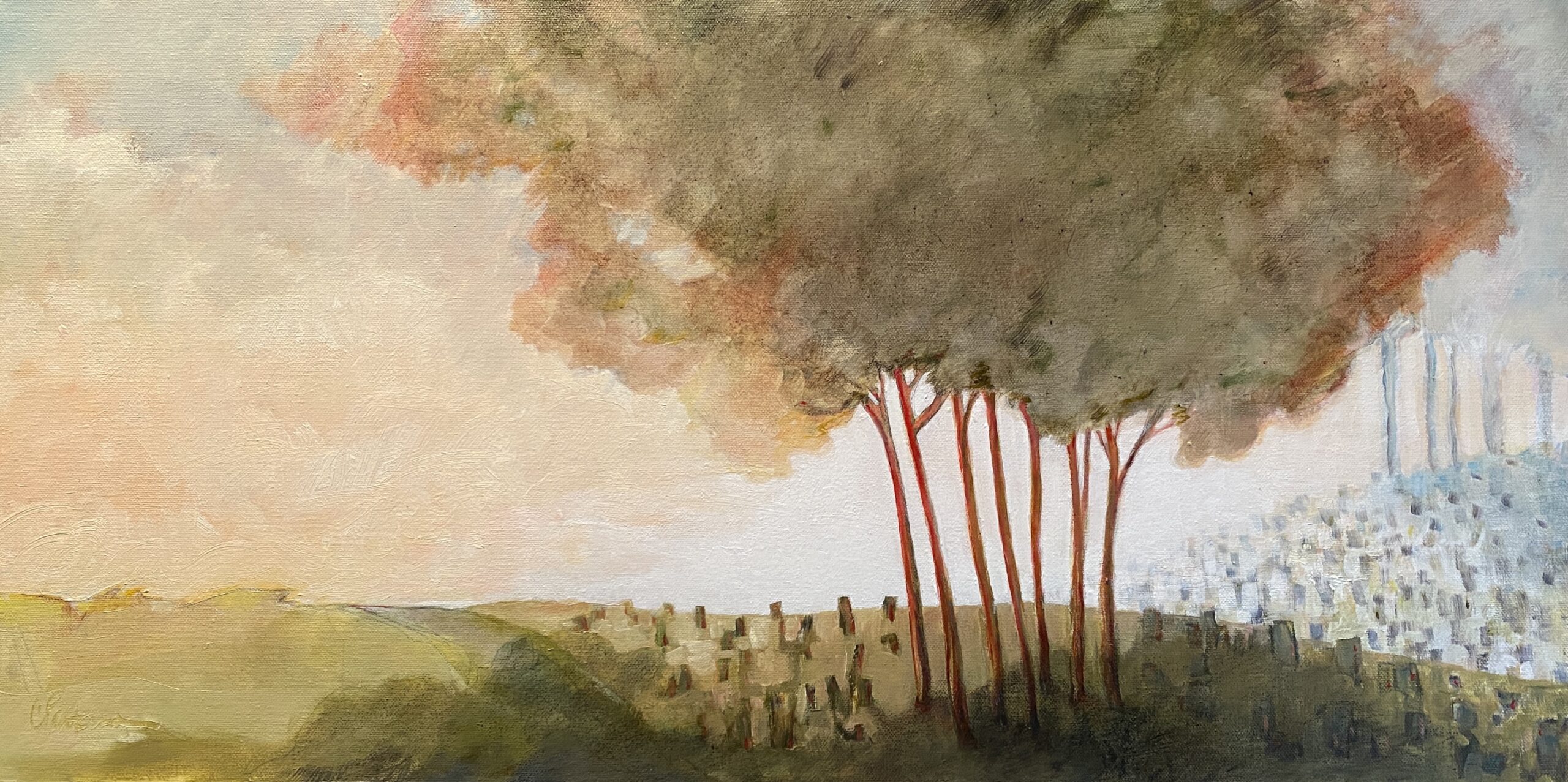 Tesserae work involves cutting up old paintings and using the cut-up pieces to construct new images, which in turn are covered with a clear acrylic finish. I had done a series using this technique seven or eight years ago, but had stored away all the chopped canvases when I felt the need to return to regular oil painting. However, now the urge to revisit the technique meant I had to dig out and unwrap the remains of all those old canvases. There were big pieces of recognizable images long gone. In some cases, half an intact canvas was left in good condition. Others were cracked and had paint falling away from the canvas. There were long strips of colors and tiny remnants of houses and faces. But right at the top was the face of my old friend … Garden Royalty …