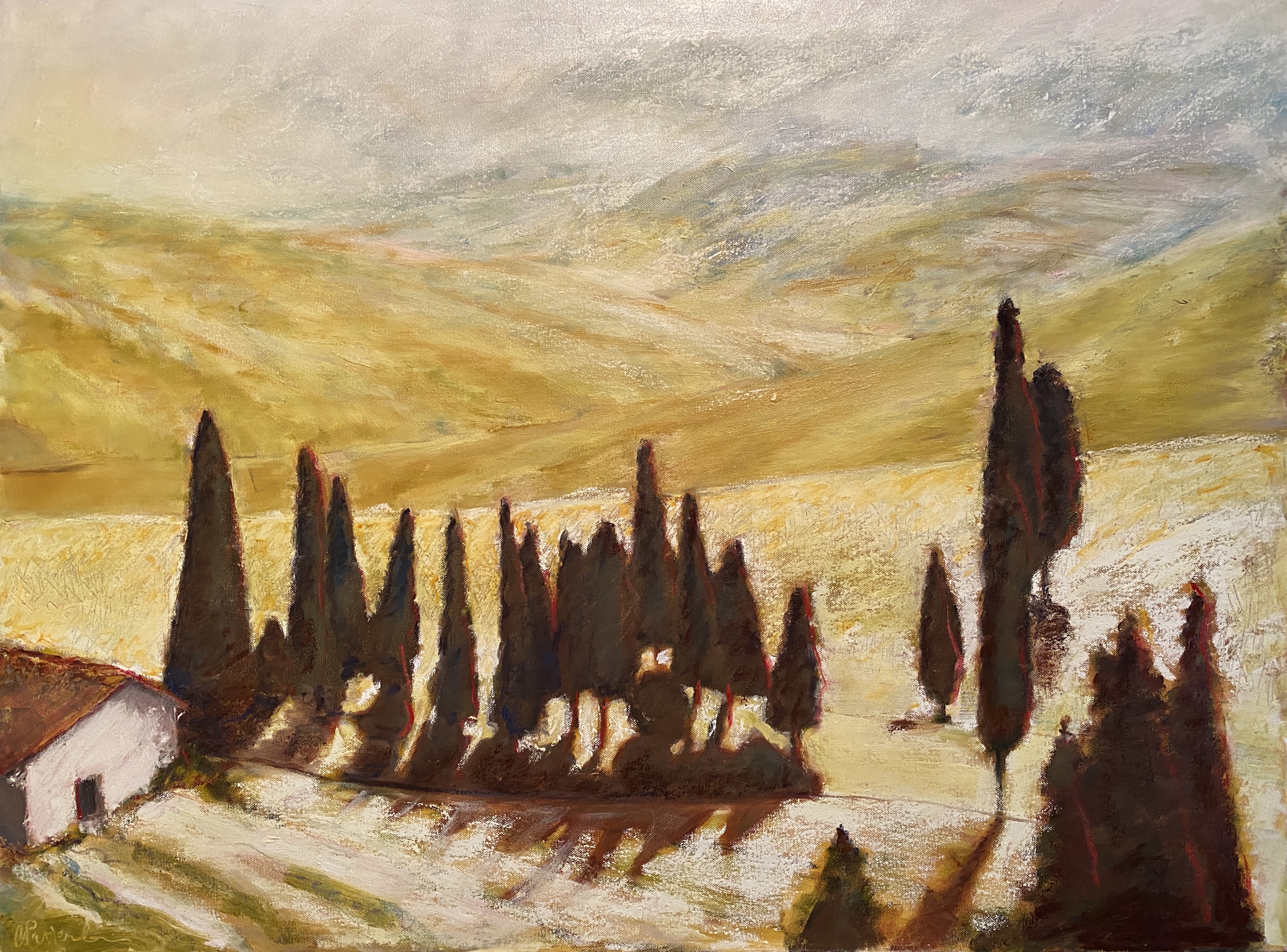 It is an old landscape … the same fields of olives and grapes that we see today, appear in the background of almost every Virgin and Child or Adoration of the Magi painted during the Renaissance. Long-ago spires of pines are seen to stand vigil against the elements even then. And just as an exclamation mark adds excitement to a line of text, the lovely fingers of cypress add visual energy to the mundane world of olive trees and vineyards. It is as if time past has come forward to welcome you to Tuscany.